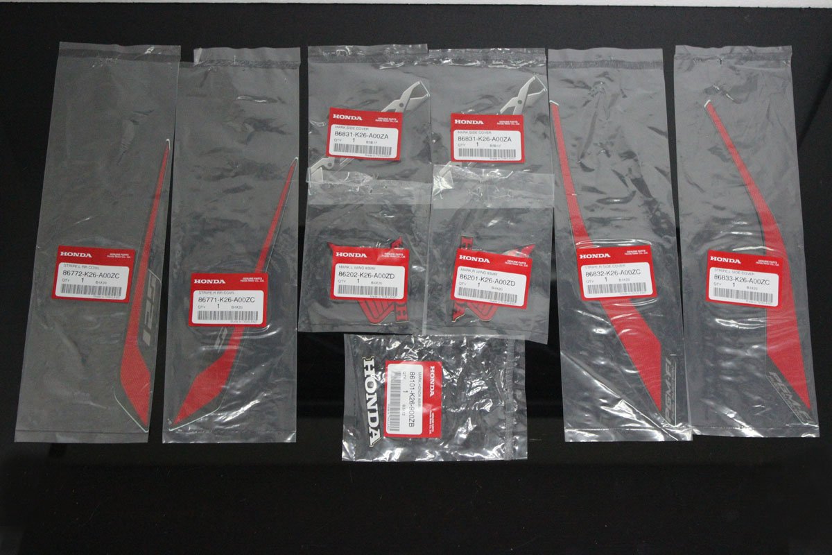 Decal Set, MSX125, Type 9, 2015 Asteroid Black Metallic Scheme. This set comprises of a complete set of all the OE Honda decals required for the painted panelson the MSX125. Note it includes the decal ‘MSX125’ not ‘Grom’ as used in some markets.