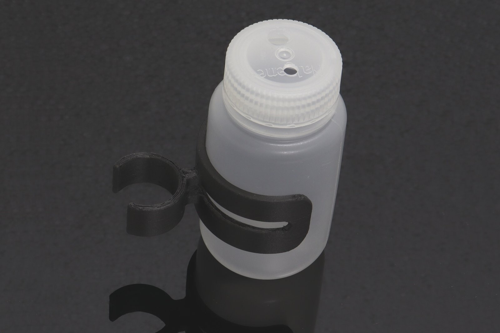 In house designed and 3D printed in CF reinforced Nylon, with excellent strength and durability this exhaust valve bottle holder is the perfect solution to securely fit the exhaust valve bottle to the frame (cable tie included)