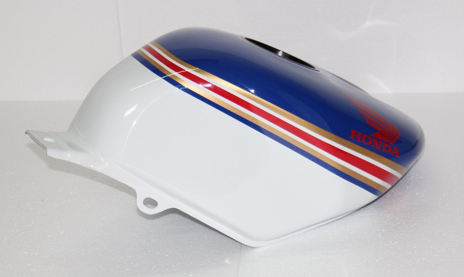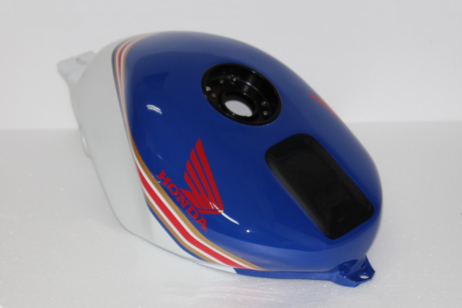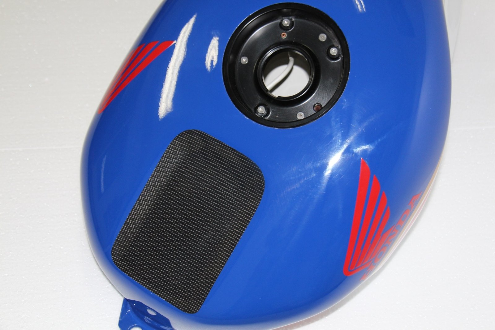 Laminated with a Kevlar layer for abrasion and puncture resistance, this fuel tank is both strong and light. Unlike most aftermarket fuel tanks, this one is designed so that there is no compromise with installation and through use of high quality CNC machined aluminium inserts, retains the original associated hardware including the stock Honda or keyless fuel tank filler caps and stock fuel cock.