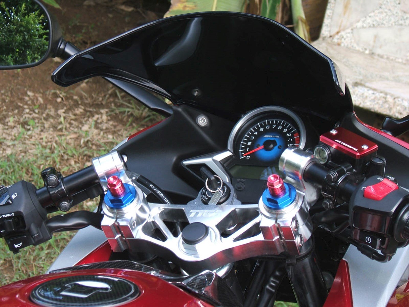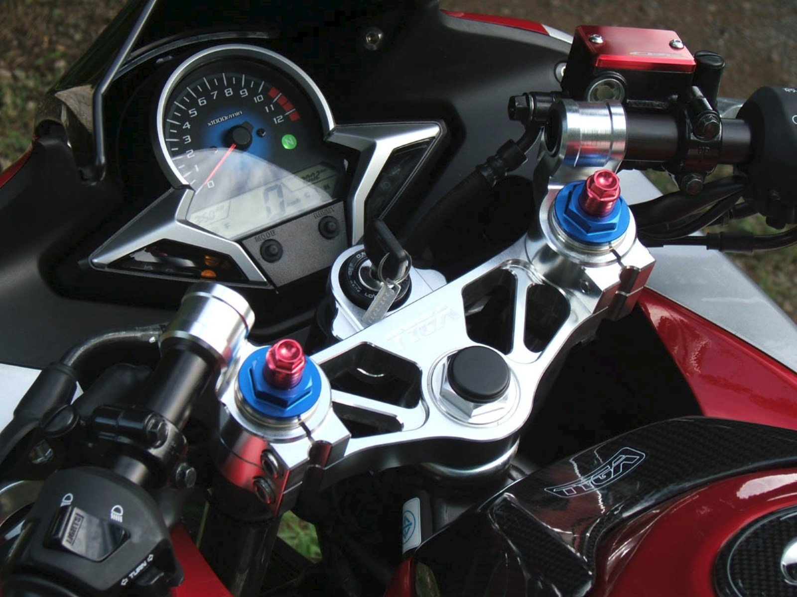 This CNC machined handlebar set is designed to change the handlebars to be up to 25 mm. lower from the stock position giving a more sporting riding position. The ergonomics work very well with our step kit STAA-0013 putting more weight over the front end for better control, while putting the rider’s upper body lower behind the fairing for better aerodynamics and less fatigue at high speed riding.