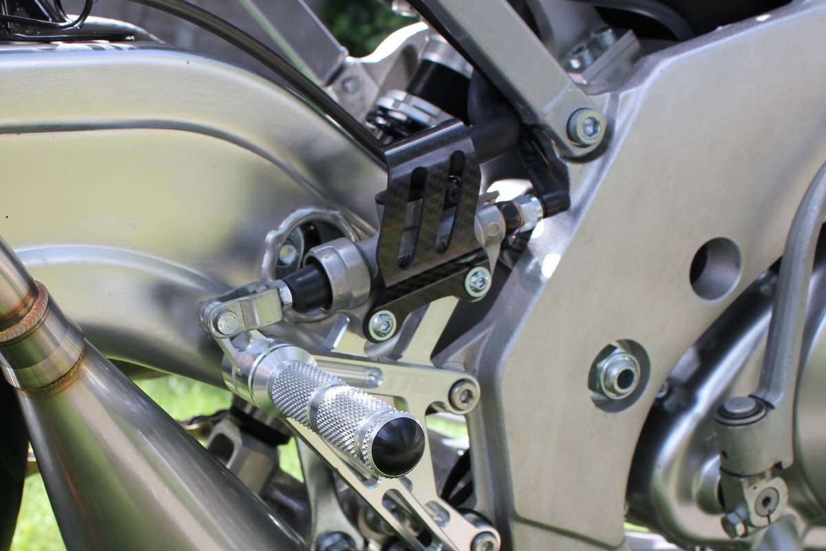 This lightweight carbon heelguard can be used as a direct replacement for the heavy steel one on the VJ22 RGV250. It can also be fitted to many other models, being suitable for most models which have Nissin master cylinders with 45-49 mm. pitch mounting holes.