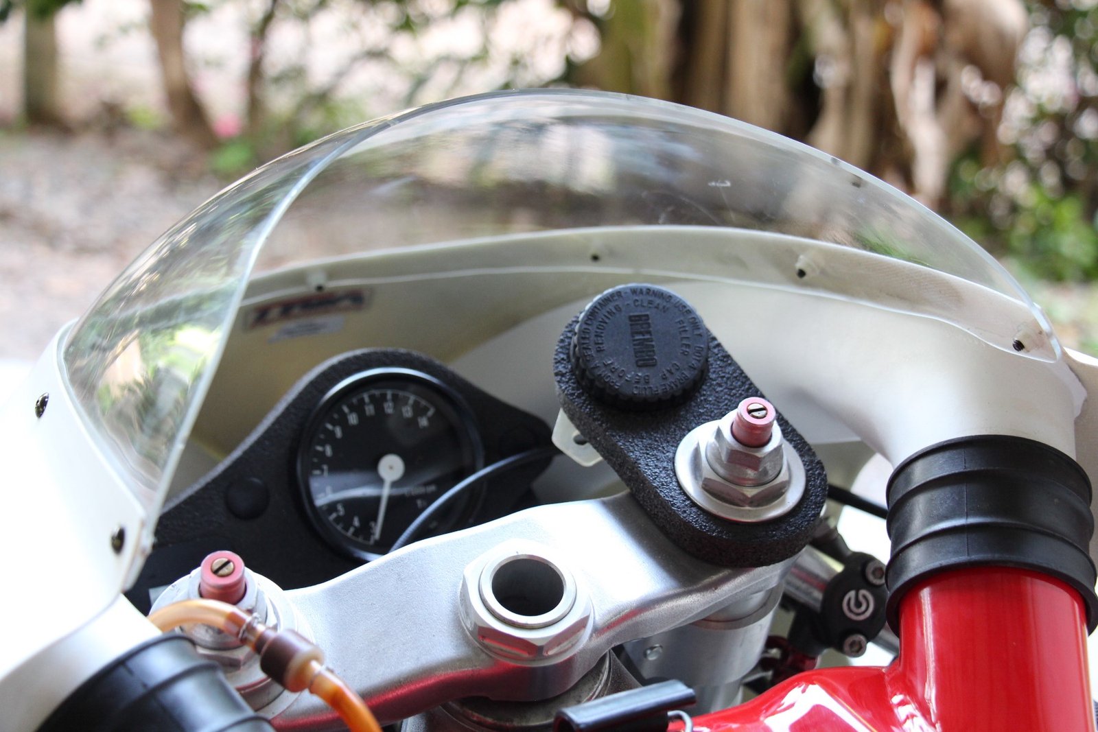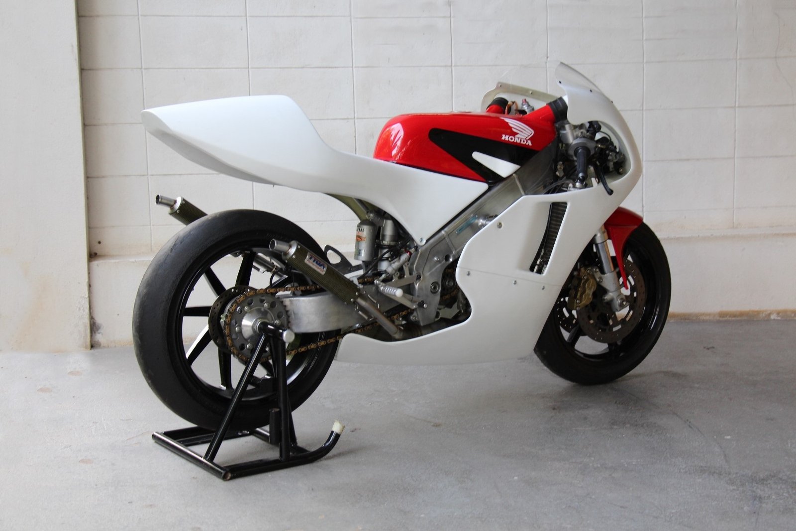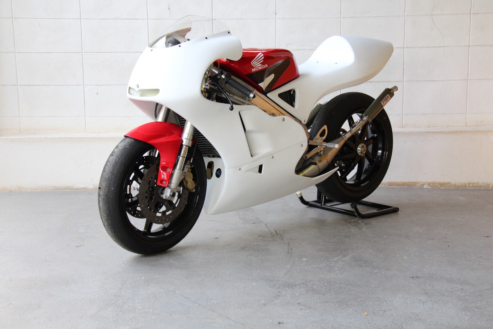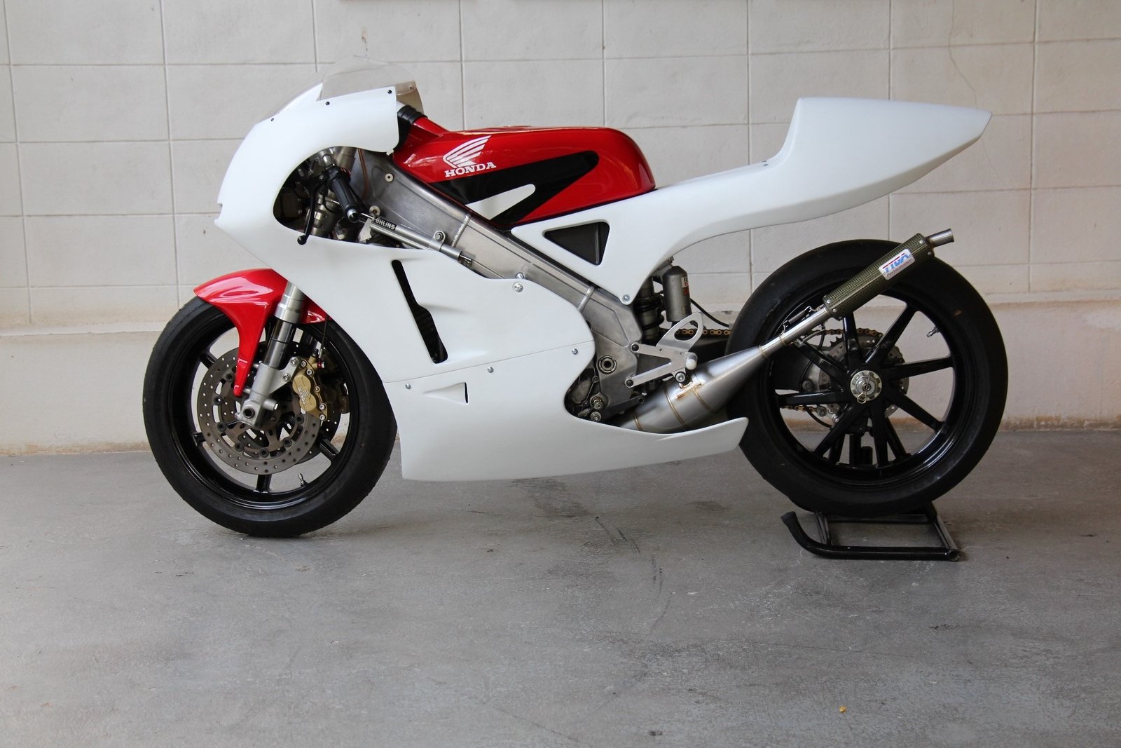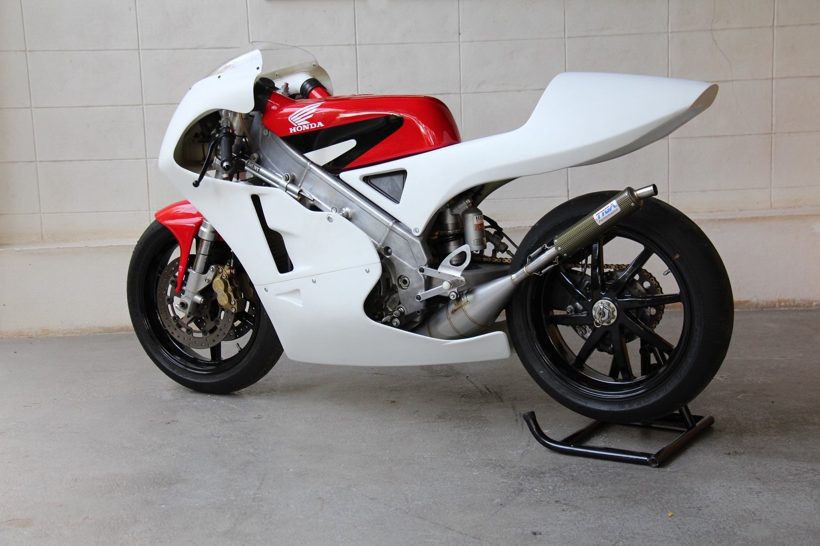 Although the late model stock shape NX5 RS250R works well, to our eyes it is a bit lacking in lines and we prefer the 1995 factory NSR racer look as ridden by Ukawa and Okada. We therefore decided to make a similar style seat cowling which would be a direct fit for the NX5. The seat uses a lightweight aluminium stay to relocate the rear mounting bolts from the sides to the seat pad area and is covered underneath for streamlining and protection of the PGM and connectors. It is easy to install and being made from high quality epoxy resins and top quality glass fabric is strong and crash resistant.