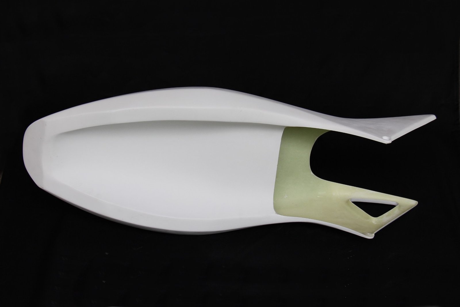 The upper fairing is modelled off the last version of the NX5 RS250R but will fit any NX5 which has the ram air through the fuel tank system. Made from high quality epoxy resin and 200 gram glass fabric, this product is both light and strong. It will tend to flex and not shatter in the event of an accident and hold up well to minor crashes. It is finished in primer ready for paint. To be used with lower cowling BPFL-9036.