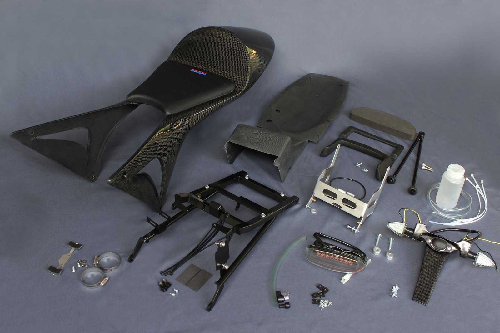 The kit is supplied with all mounting hardware including subframe and battery box. The taillight used in this kit, is LED and may not comply with road use regulations in some territories,( though we have not heard of any issues after selling them worldwide for ten years).