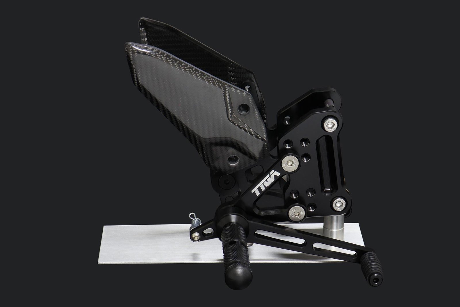 Designed in-house by TYGA Performance using the latest CAD/CAM software, these CNC machine-made step kits are made from top quality aircraft grade aluminium. Complete with OEM replica carbon heel guards on left and right hanger.