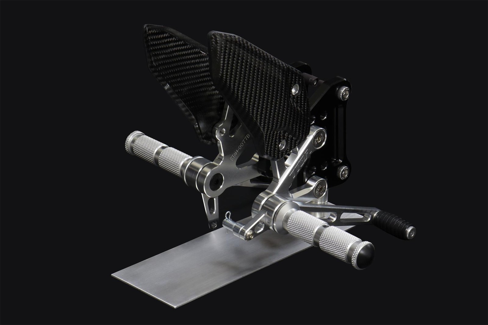 Designed in-house by TYGA Performance using the latest CAD/CAM software, these CNC machine-made step kits are made from top quality aircraft grade aluminium. Complete with OEM replica carbon heel guards on left and right hanger.