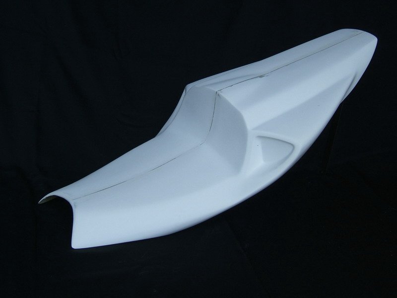 Stock shape. No taillight holes. Made from lightweight, cross weave mat and epoxy resin for superior quality and strength. Mounting holes marked out. This item has a filled in seat area and should be used with a foam seat pad