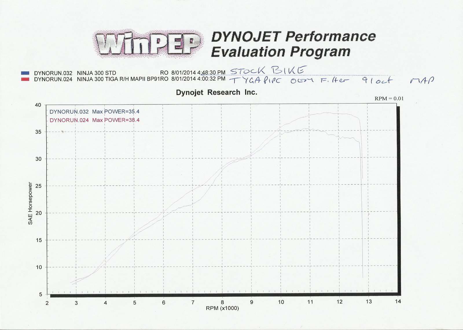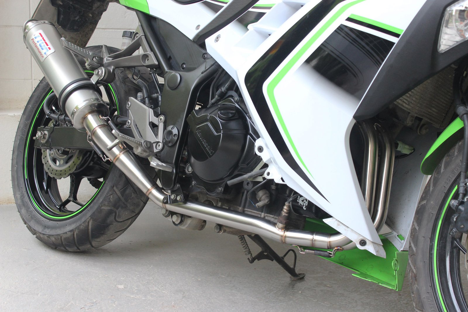 We now have a new and improved design to give you the edge in this highly competitive class. Through our continuous R&D, we have enhanced the dimensions of components to squeeze even more power from the Ninja 250 when used with the TYGA system*. Made in stainless steel with spring mounted round Stainless silencer this system significantly increases performance, saves weight and enhances the looks of the bike. Sounds great too! Unlike the stock system and most other aftermarket full systems, the TYGA Performance full race system is routed up the right side of the bike for the best possible gas flow and the performance figures support this. Please see below.