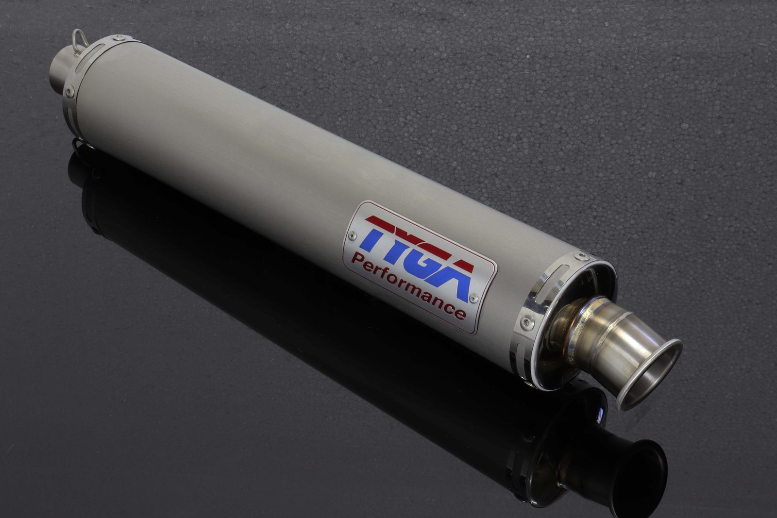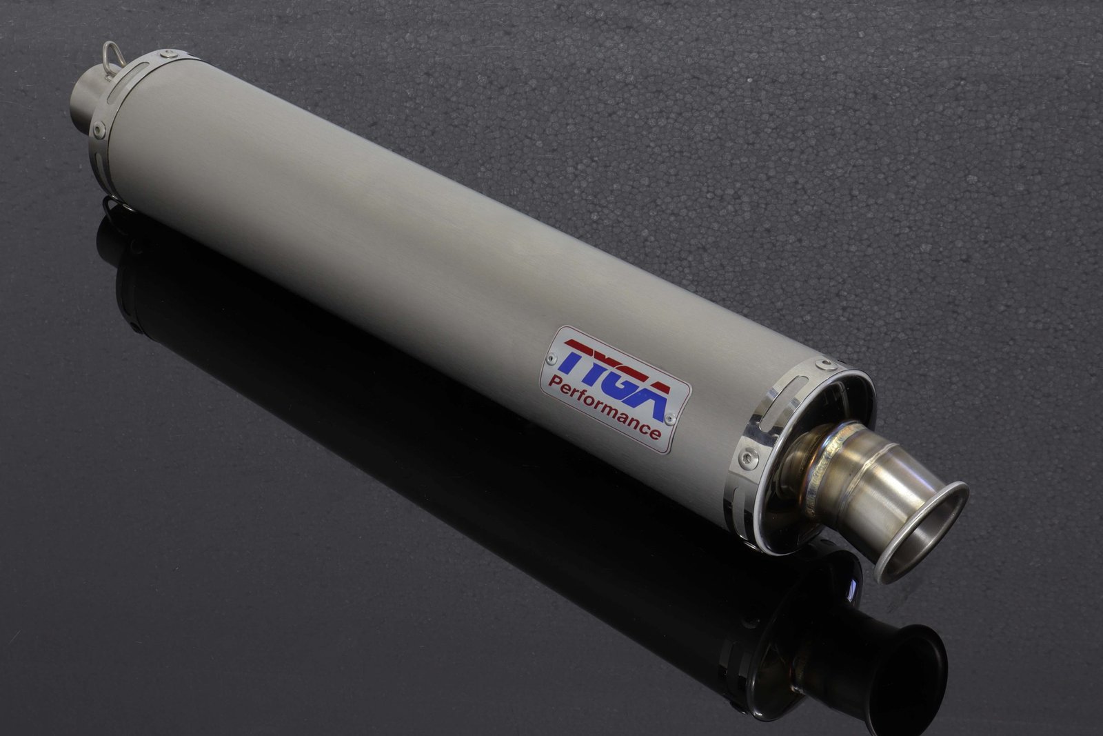 Supply this exhaust system with a large TYGA badge, a small TYGA badge or no badge on the top silencer.