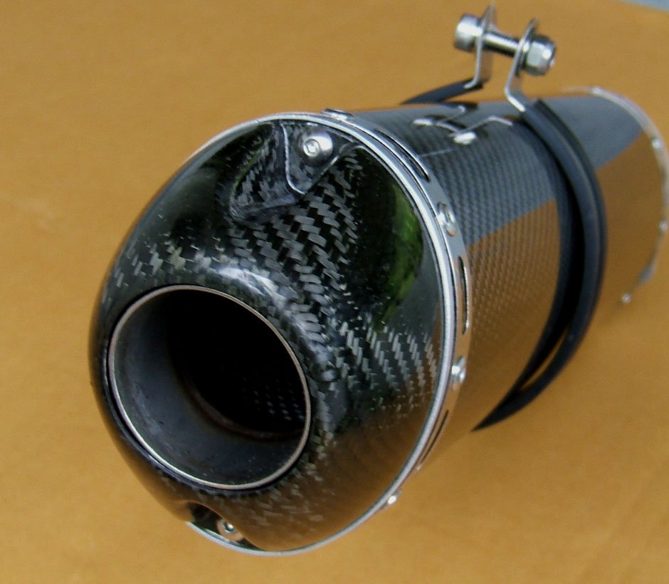 This easy to fit bolt on silencer replaces the stock heavy aluminium one on the stock system and is an alternative to the more expensive full race system. Constructed from lightweight carbon fibre with carbon exit cap, and aluminium mount cap, it fits in minutes using the original hardware. Stainless steel mounting clamp is provided when you purchase this product.