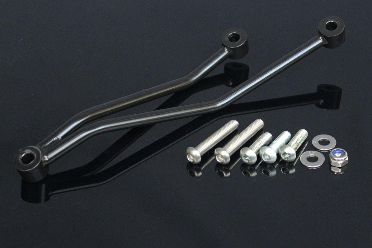 Two different length mounting bolts are provided to allow the stay to be fitted alone, or to be fitted with the passenger footrest over the top.