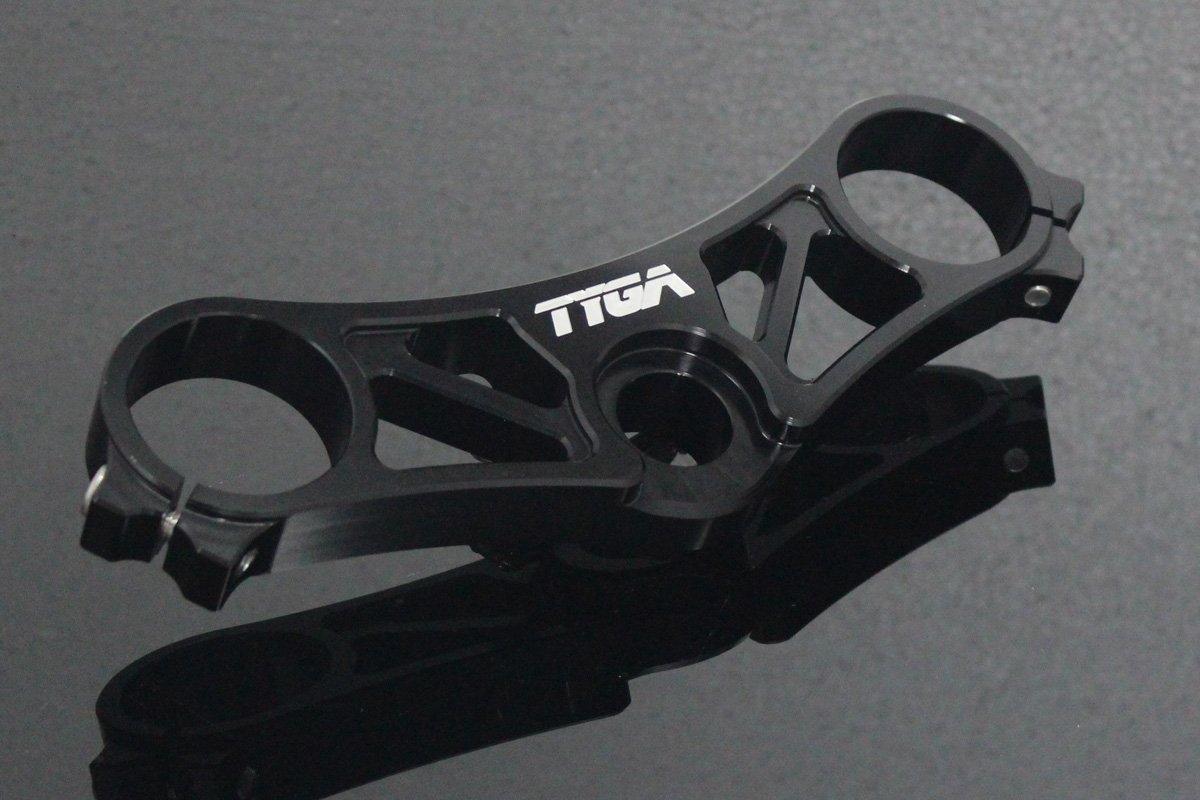 Designed and machined in house by TYGA, as a direct replacement for the OEM top triple clamp. FEA tested and developed for increased strength without unnecessarily increased weight.