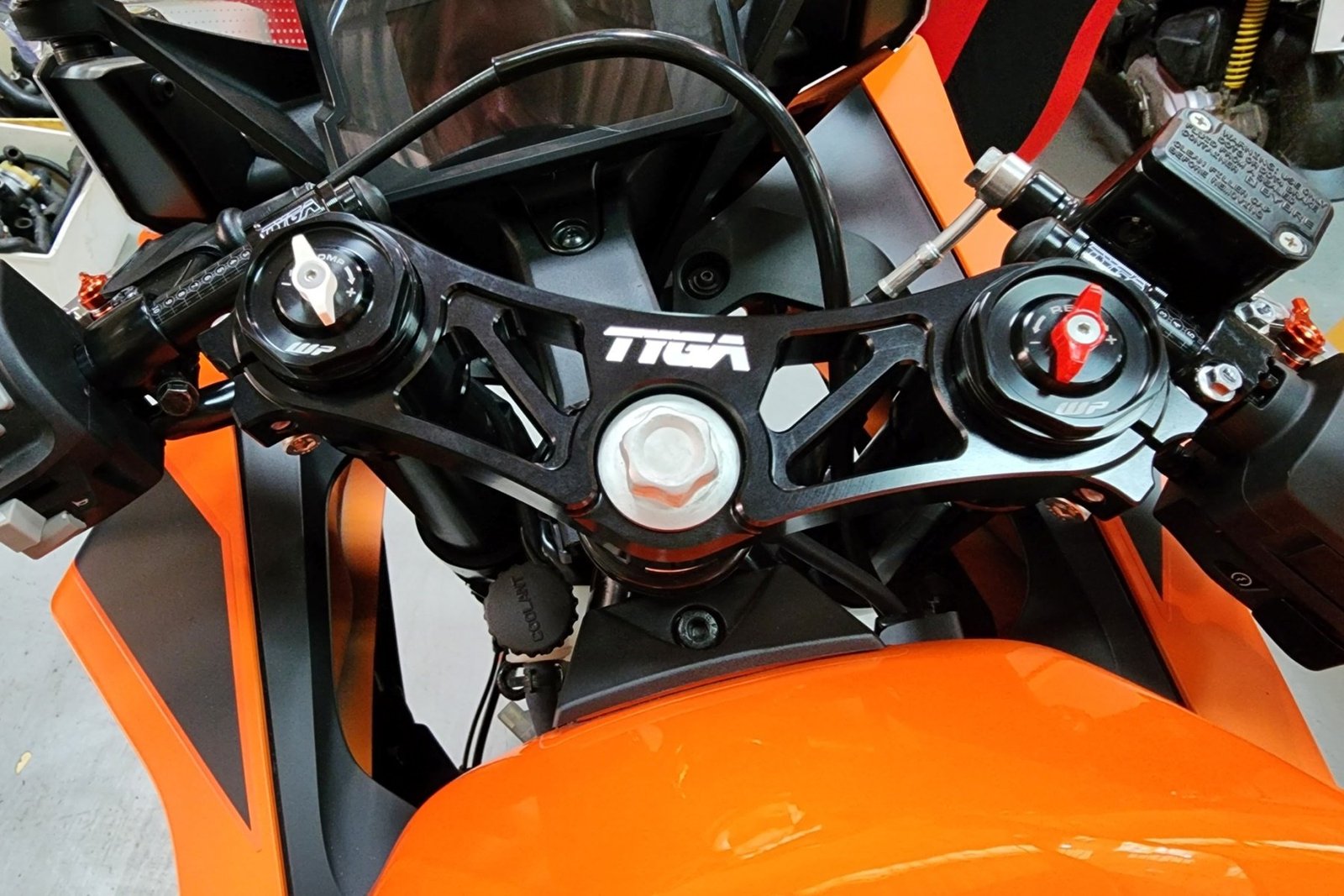CNC machined TYGA top triple clamp with detachable ignition lock holder for your KTM RC Series motorcycle.