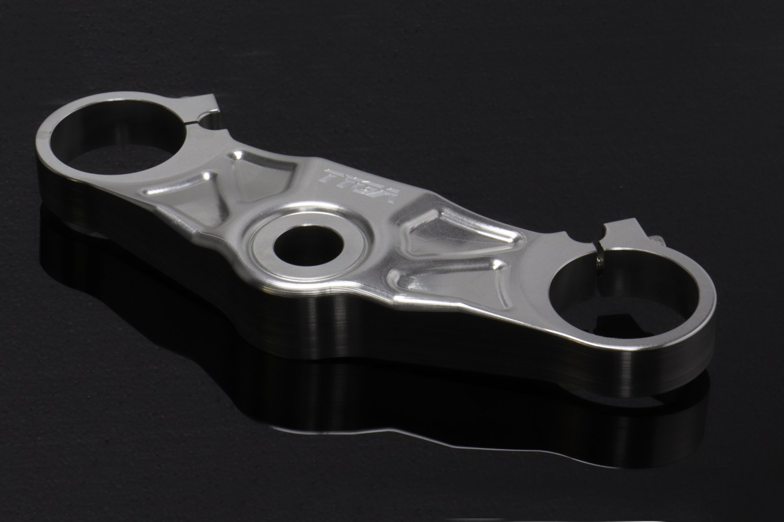 Designed and manufactured in house as a direct replacement for the standard top triple clamp. Facilitates mounting holes for securing the detachable ignition switch holder assy (TYLY-0153)