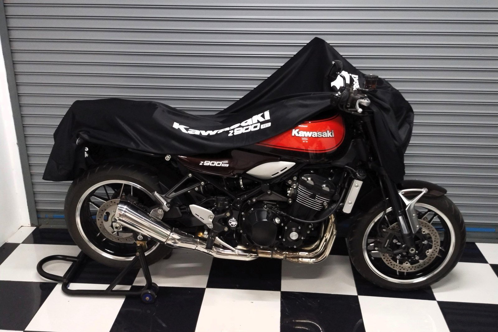 This cover is handmade from 100% breathable polyester and ideal for an indoor dust cover. Designed for the Kawasaki Z900RS but fits all fits naked bikes from 125cc up to 1000cc, the cover features a pull-string around the bottom to secure it in position, comes with its own storage pouch and is machine washable.