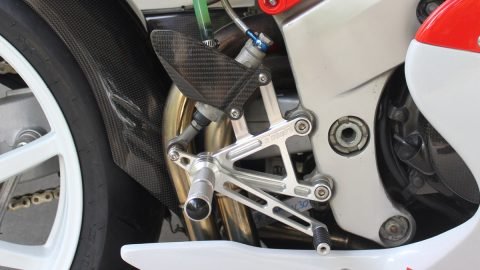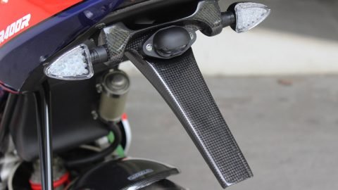 Of course with our street bike, it is not strictly necessary but hey why not? Another TYGA carbon component is the rear hugger which is actually an NC35 one (due to the NC35 wheel being used) and fits with careful adjustment. Other components to finish off the transformation are the keyless filler cap, engine armour, the blue rear wheel spacer and HRC pink tank breather hose.