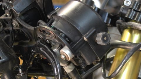 We noticed that even with a stock front end, Honda didn’t really allow enough space for the clutch cable adjuster to clear the speedometer on full steering and they mount it at a high angle which is not very sporty and actually quite irritating. Things were only going to be worse with a front end in terms of clearance, so we had a look for a solution. In typical Honda over engineering, the speedometer sits on nice fat rubber mounts so we decided to remove them. This gave us around 6 mm extra clearance. We had to put a bush behind the speedo mounts to tighten it up against the main instrument stay, but apart from that, it looks totally stock and you’d never know if I hadn’t told you! So now, with everything all tightened up and the fairing put back on, it was time for a test ride. Well, there really is no comparison. Just for the enhanced braking it transforms the bike and then you have the added bonus of 25 year newer suspension which is definitely noticeable. The front end is quite firm but it is all relative and our goal was to make a more sporty and focused bike and this we have accomplished. As we often say, these projects are never finished and we still have the rear suspension to sort out so I’d better leave a space below just in case!